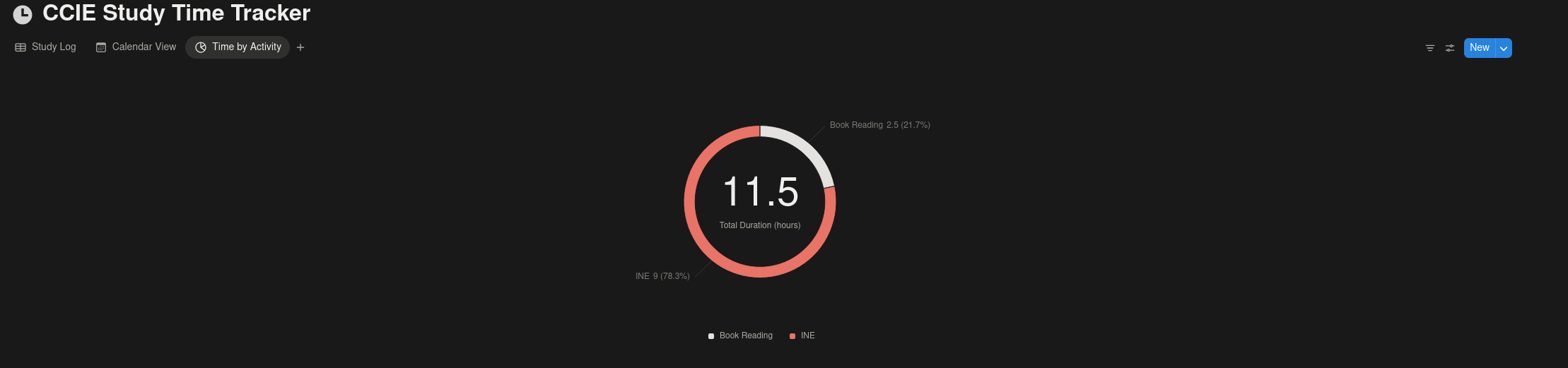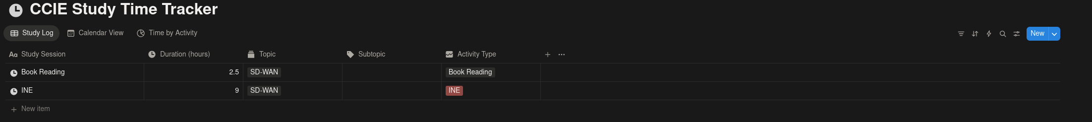 Let’s face it. We’re nerds, and we like data. So, I’ve decided to use Notion to track the amount of hours spent per category for the CCIE. There’s really no reason to do so other than I think it would be an interesting reflection experiment in the future. Everyone floats around the 1,000-1,500 hour mark for their CCIE, but I suppose it’s different for everyone and no one uses the same resources. My intent is to split them up into broad categories such as books, documentation, INE, labbing, etc. Honestly, the main benefit is to watch the number increment daily and receive some sense of motivation. I hear it’s really difficult when you’re several months in, you’re facing an uphill battle, and you think you aren’t making any progress. So far, it does feel good to enter my hours spent into the tracker even though I’m only at 11.5 at the time of writing this. It’s the first week, and I’m slow rolling it. I’ll study more hours some weeks than others. Good luck to everyone else out there!